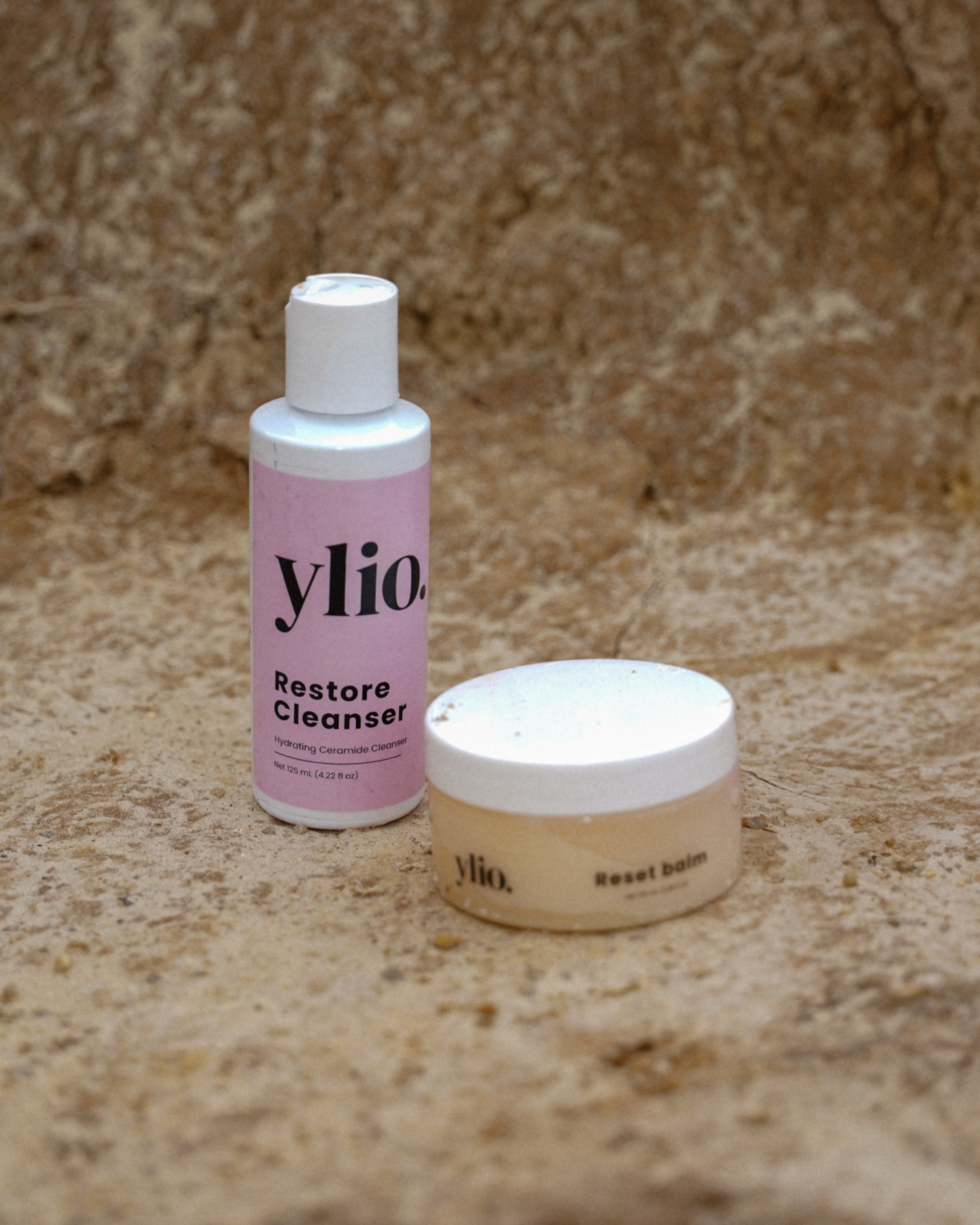 Your go-to pair for deeply clean, balanced, healthy skin. The oil-based Reset Balm melts away makeup and SPF without stripping, while the Restore Cleanser gently washes away residue and replenishes hydration. Together, they leave skin soft, calm and ready to renew.